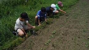 畑までの道のりで、ハルジオンやムラサキツメクサの花を摘んだり、ノビルが食べられることを知り、家で食べようとたくさんとっていました。