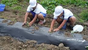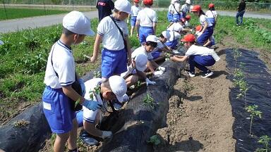 3年生の総合的な学習でサツマイモの苗を植えました。