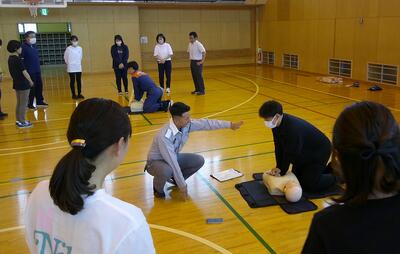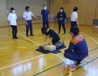 6月13日(金)放課後、校内研修の一環として、利根沼田広域消防本部・西消防署の救命士、消防士の方を講師に、救急救命講習会を実施しました。