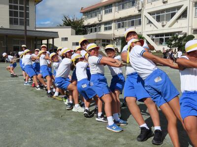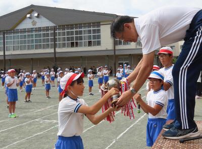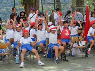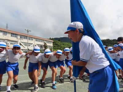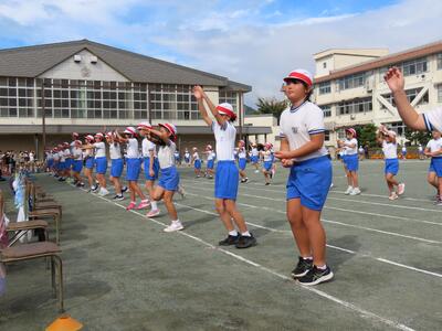 10月5日(日)天気にも恵まれ、たくさんの保護者、地域の皆様の温かいご声援をいただきながら運動会を開催しました。【不屈・情熱・団結】のスローガンのもと、児童は粘り強く、強い気持ちをもって、仲間と力を合わせながら競技に取り組みました。長い歴史をもつ運動会も本年度が最後。最高の運動会にしようと高学年がリーダーシップを発揮しながら、準備や練習に取り組んできました。その成果があらわれた素晴らしい運動会にすることができました。
