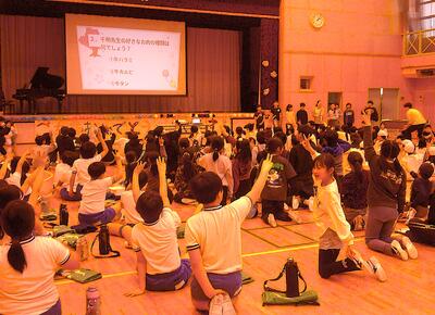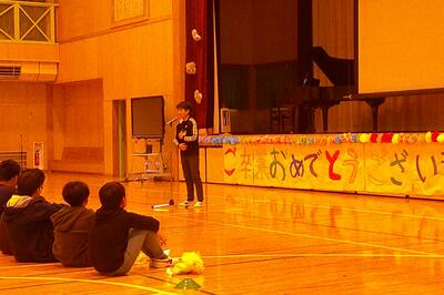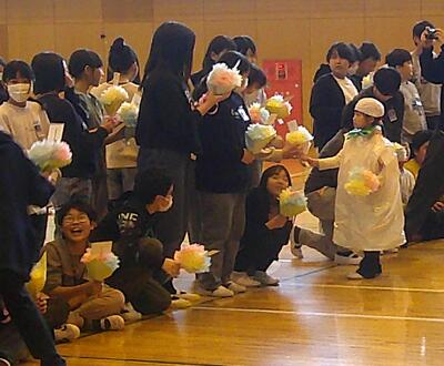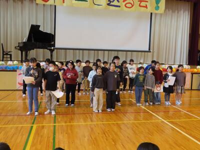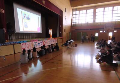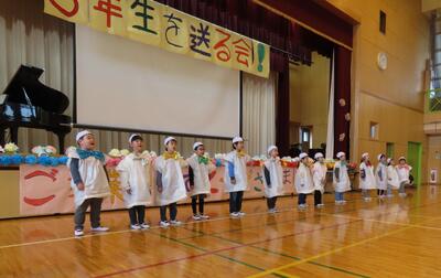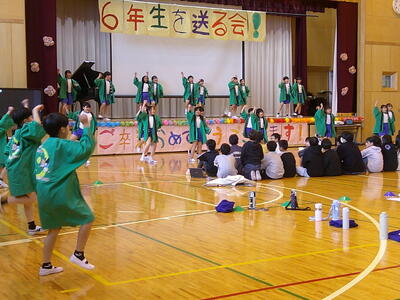 2月25日(水)、6年生を送る会を行いました。クイズにゲーム、合唱、踊りなど、各学年が発表内容を工夫しながら、6年生に感謝の気持ちを伝えたり、中学校でも頑張ってくださいとエールをおくりました。5年生が作成した思い出スライドでは、6年生が入学した頃からの写真がコメント入りで紹介され、その都度、大きな歓声に包まれました。BGMに合わせて手拍子も起こり、会場全体が盛り上がりました。6年生からは田中優樹さんが代表として、各学年の発表について感想を交えながらお礼の言葉を伝えました。気持ちの温かくなる、素敵な会になりました。準備と進行をしてくれた5年生のみなさん、ありがとうございました。