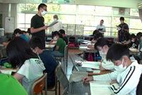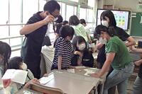 第3回校内研修では、資質向上研修(学校保健に関する内容)として「緊急時対応」の研修を行いました。養護教諭がコーディネーターとなり、水泳指導時の熱中症の事例、休み時間に持病なしの児童が突然倒れ込んだ事例について、誰がどのように行動すればよいか、その際の課題は何かについて、Googleジャムボードを用いて話し合いを行いました。また、練習用トレーナーを用いてエピペンの使い方について体験を通して確認しました。