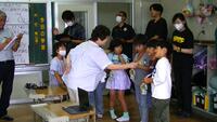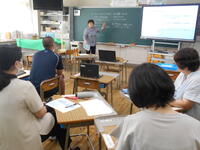 夏休み終盤のこの日は、11月14日に行う公開授業(2年・3年・5年)に向けた指導案検討を模擬授業形式で実施しました。授業者は中心発問を中心に全体の大まかな流れを授業し、参加者は児童役として予想される児童の反応を返しました。その後、授業者と参加者で「本時のねらい」「エージェンシーを発揮するための手立て」「自己決定・対話と交流・試行錯誤の場面」「中心発問・補助発問」を中心に授業内容の検討を行いました。最後に群大附属教育実践センターの久保先生と紺谷先生より指導講評をいただき、子ども主体の問題解決的な道徳学習の展開についてや、思考を整理するための板書の工夫についてなど、多くのご指導をいただきました。指導していただいた内容を踏まえて、2学期の実践を進めていきたいと思います。